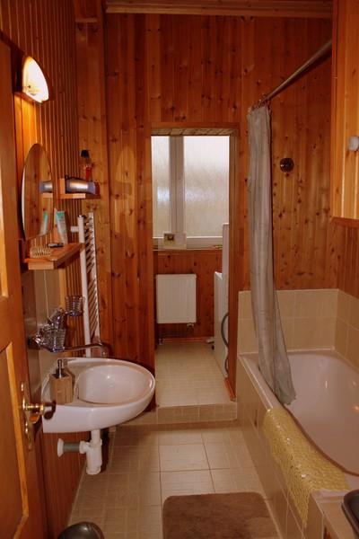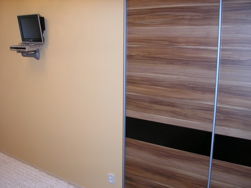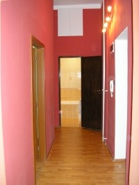 В большой спальне с гостиной зоной (22 м2) располагаются: двуспальная кровать, шкаф, комод, мягкий угол, журнальный столик. Малая гостиная (16 м2) оборудована кухней, обеденной зоной со столом и стульями, раскладывающимся диваном. Площадь ванной комнаты - 6 м2, коридора - 3 м2. Пол в ванной комнате с подогревом.