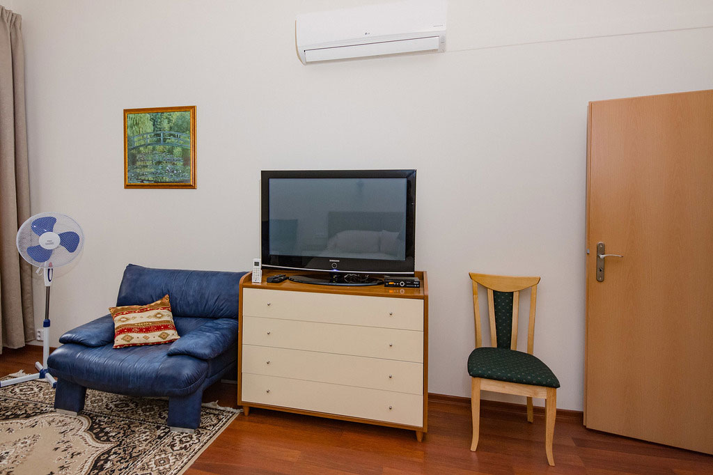 Апартаменты оборудованы всем необходимым для комфортного проживания гостей: вай-фай Интернетом, посудой, мебелью. В наличии вся необходимая бытовая техника: посудомоечная машина, микроволновая печь, стиральная машина, холодильник, 2 телевизора (один из которых Смарт, с подключением к Интернету), кондиционеры, утюг и гладильная доска, пылесос, электрочайник, фен.