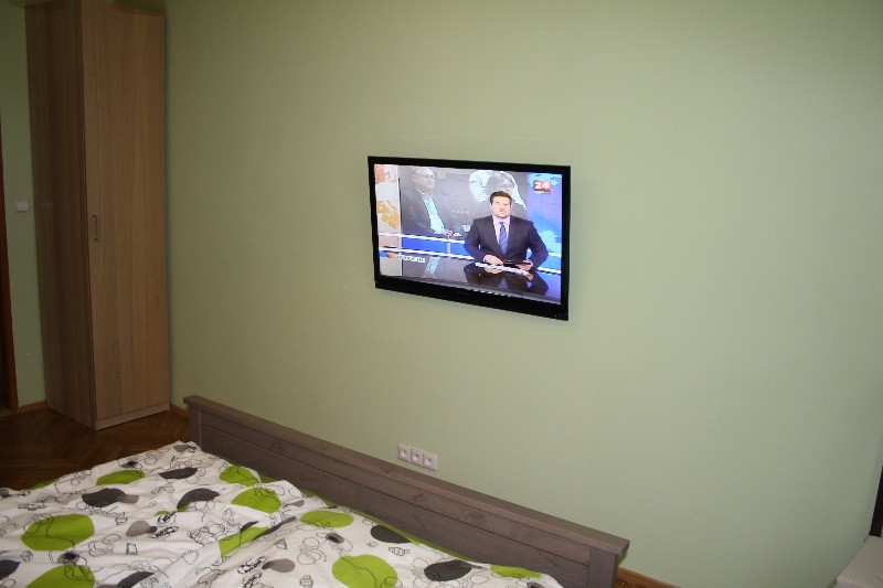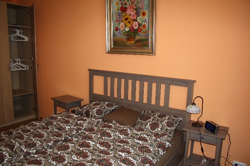 В каждой спальне установлены двухспальные кровати, тумбочки и платяные шкафы, телевизоры. В гостиной - двуспальный раскладывающийся диван, телевизор с русскими программами. В прихожей есть встроенный штраф. Также есть гладильная доска, утюг и сушилка для белья.