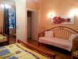 Спальня: двуспальная кровать, односпальная кровать, детская кроватка, встроенные шкафы с большим зеркалом.