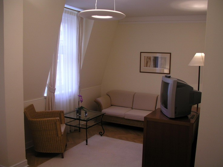 Apartament: двухкомнатный апартамент, ванная комната, туалет, гостиная, спальня.