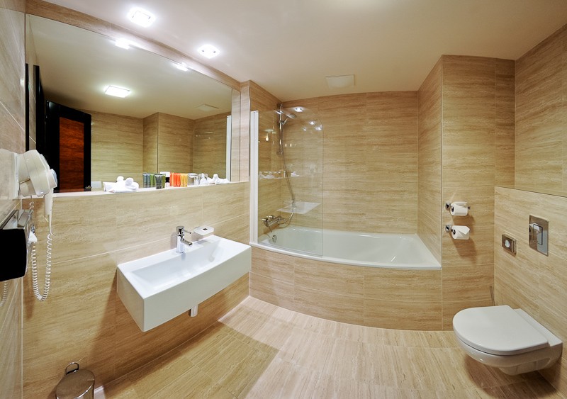 В номере, кроме основного оснащения, есть xалат, тапочки и улучшенная косметика.